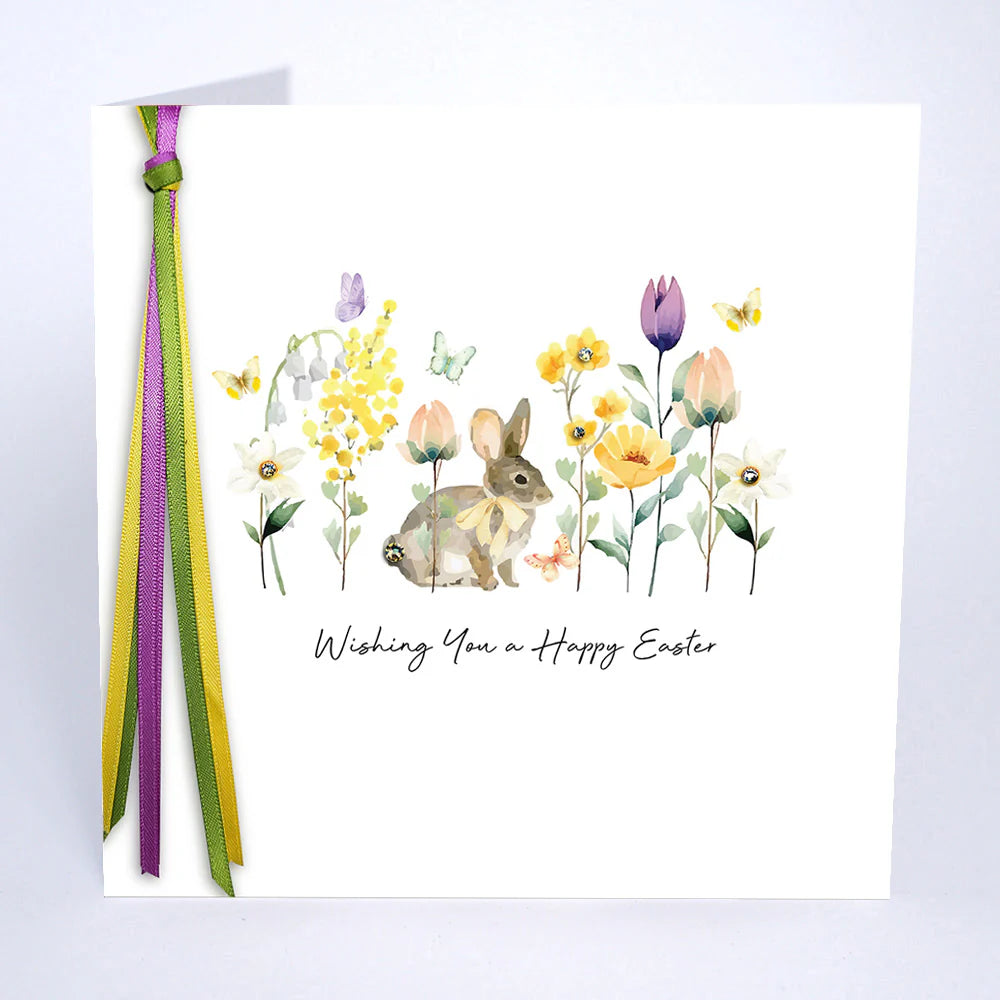 Beautiful watercolour Easter illustrations in vibrant springtime colours, lovingly embellished with genuine crystals and hand-tied satin ribbons.