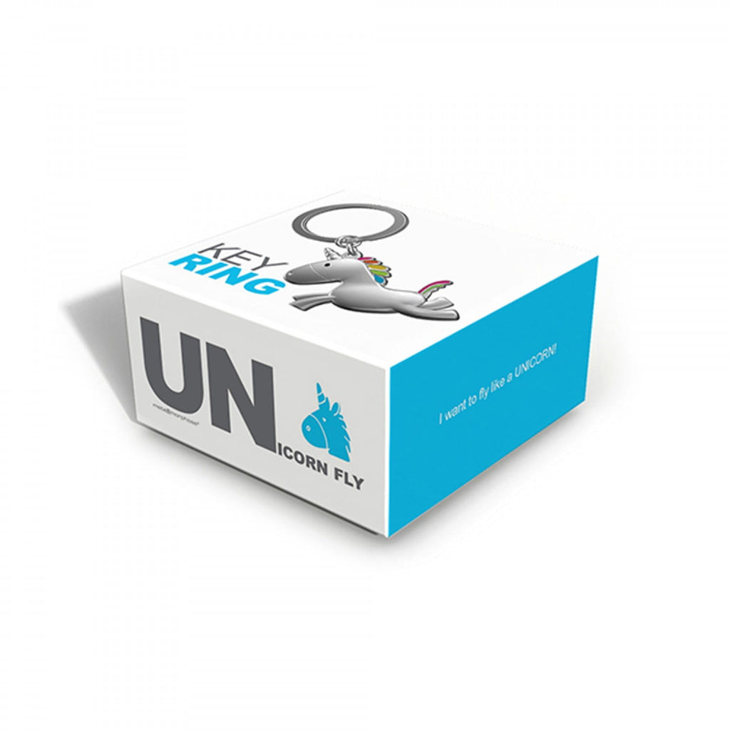 Jump and prance around with this friendly unicorn from Metalmorphose. He's solid chrome with some colourful resin in his magical mane and tail. Made from durable zinc and chrome this keyring clips easily onto keys or bags.