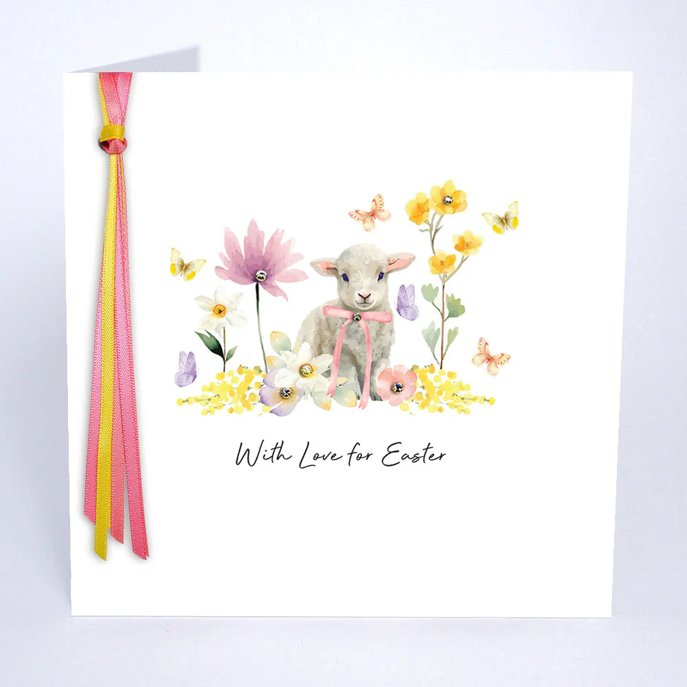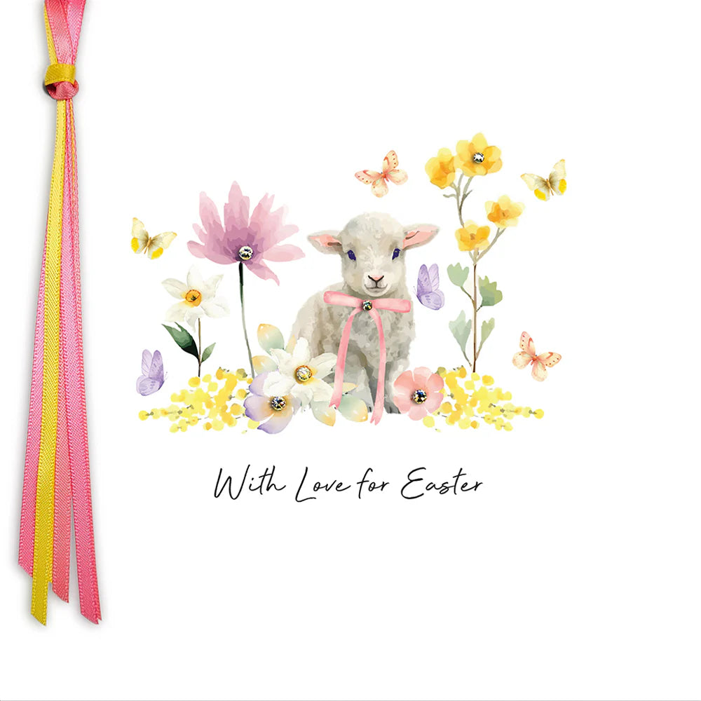 Beautiful watercolour Easter illustrations in vibrant springtime colours, lovingly embellished with genuine crystals and hand-tied satin ribbons.