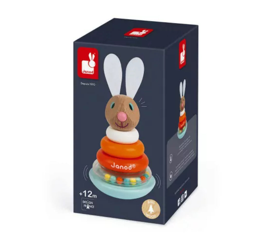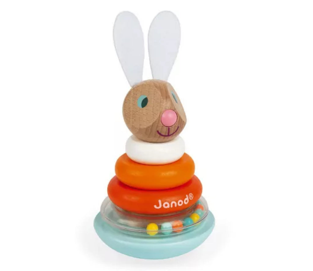 A cute little rabbit with stacking pieces to develop dexterity. A ring of balls that jingle together!