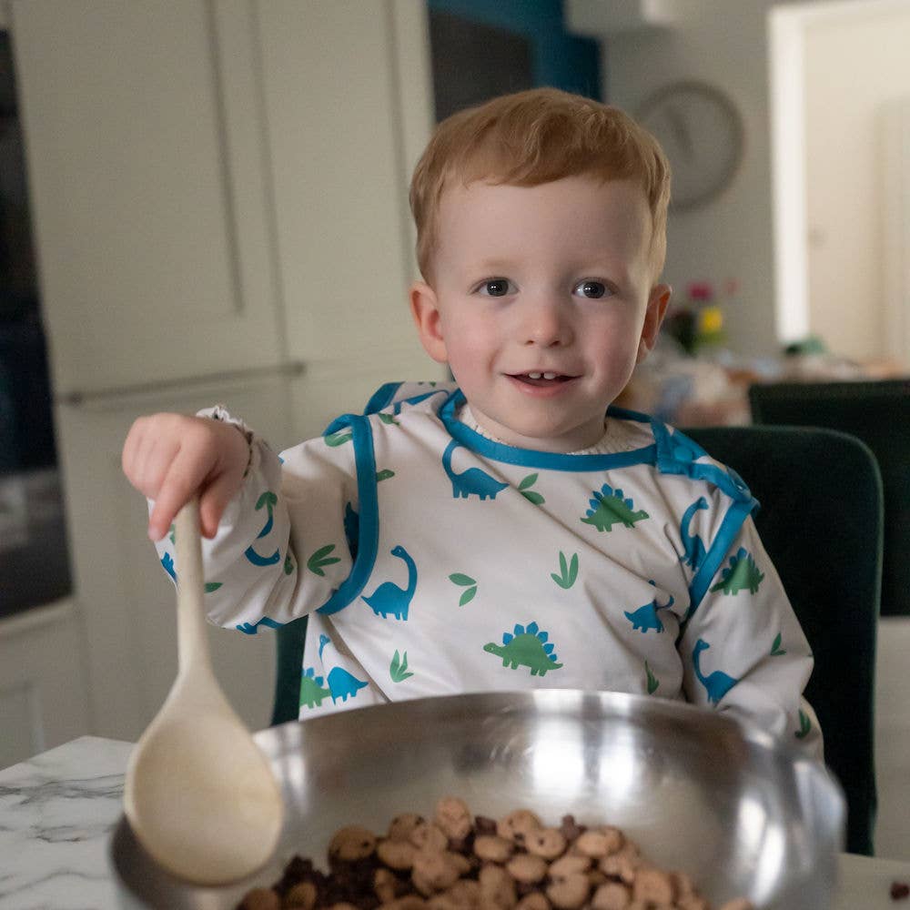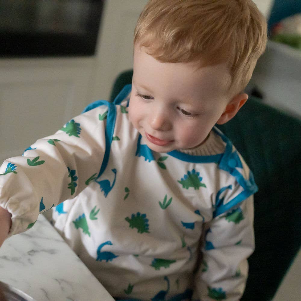 Cover your little one's clothes with our Dinosaur design long sleeve bib.
